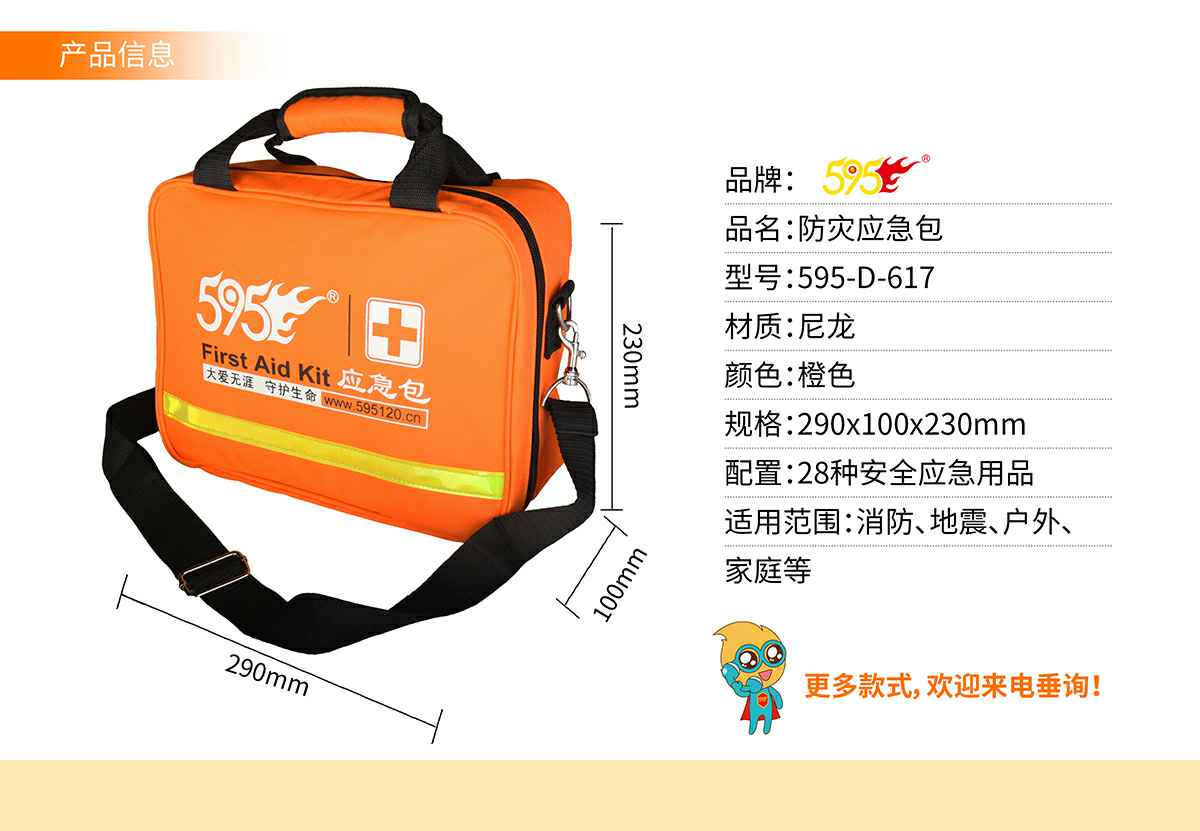 防灾应急包,适合突发灾害事故时恶劣环境下使用,配置全面、科学,满足从日常保健到灾难自救逃生的全面需求。